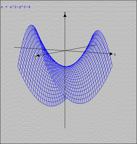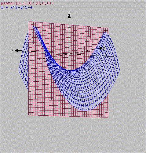 So, we can see that when x=0 our equation (4) turns into z=-y2 - 4 and is also a parabola,