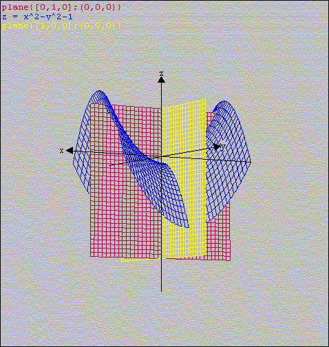 interception of a blue saddle and a red plane. It really corresponds to our equation (4) when y=0